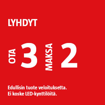 Poistoerä vain verkosta!100 495 30 pv:n alin hintaVerkkokauppaTavaratalojen saatavuus