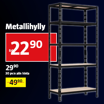 Erä!Tarjous!Metallihylly musta 180 x 90 x 40 cm2290 4990 norm. hinta 2990 30 pv:n alin hintaVerkkokauppaNouto tavaratalosta -