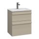 Svedbergsin Poem-allaskaappi tuo kylpyhuoneeseen tyylikkään ja rauhallisen ilmeen. Sand-sävyiset vedinlistaetupaneelit ja integroidut vetimet korostavat modernia ja selkeää muotoilua. Käytännöllisessä kaapissa on kaksi pehmeästi sulkeutuvaa laatikkoa, jotka liukuvat täyspitkillä kiskoilla sujuvasti ulos. Kompakti koko sopii erinomaisesti pienempiin kylpyhuoneisiin.