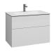 Poem on kylpyhuonekaluste, jossa yhdistyy toiminnallisuus ja ajaton design. Valkoinen väri tuo raikkautta sisustukseen, ja kaksi laatikkoa liukuvat sulavasti täyspitkillä kiskoilla – säilytystilaa on runsaasti ja helposti käytettävissä.