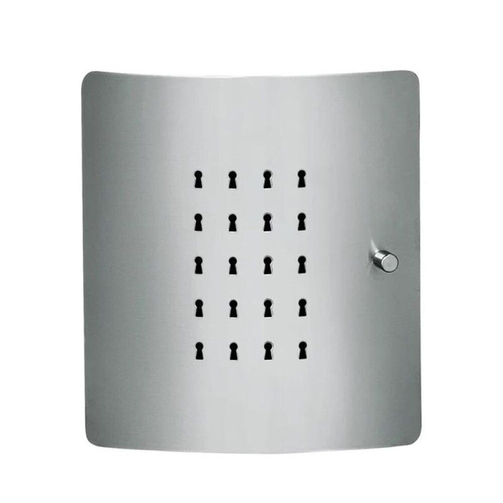 Yksinkertaisen tyylikäs avainkaappi, jossa 10 koukkua avaimille. Erittäin nopea avata ja sulkea. Ovi pysyy kiinni magneetin avulla (magneeetin lujuus säädettävissä kahdella ruuvilla). Avainkaapissa on ruostumattomasta teräksestä valmistettu ovi ja mustasta teräslevystä valmistettu kaappi. Kaapinoven saranat ovat vasemmalla puolella ja ovi aukeaa n. 90 astetta. Avainkaappi sopii käytettäväksi niin kotiin kuin toimistollekin.