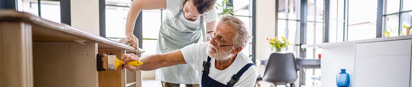 Jos haluat uudistaa vanhoja kalusteita ilman suuria investointeja, voit maalata tai päällystää ne uudelleen. Esimerkiksi vanhat puukaapit voi maalata valkoisiksi tai muuhun haluttuun sävyyn, ja vanhat laatikostot voi päällystää kontaktimuovilla.