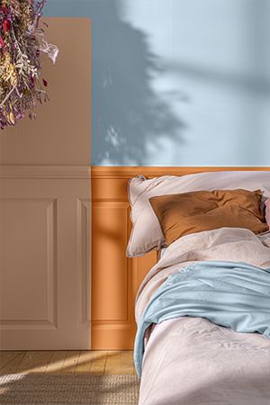 • Himmeä sisämaali toistaa värisävyn rauhallisena. Myös himmeä maali sopii hyvin olo- ja makuuhuoneisiin sekä lastenhuoneisiin, ja kosteutta kestävä himmeä sisäseinämaali puolestaan on suosittu valinta kylpyhuoneiden ja pukutilojen seiniin.