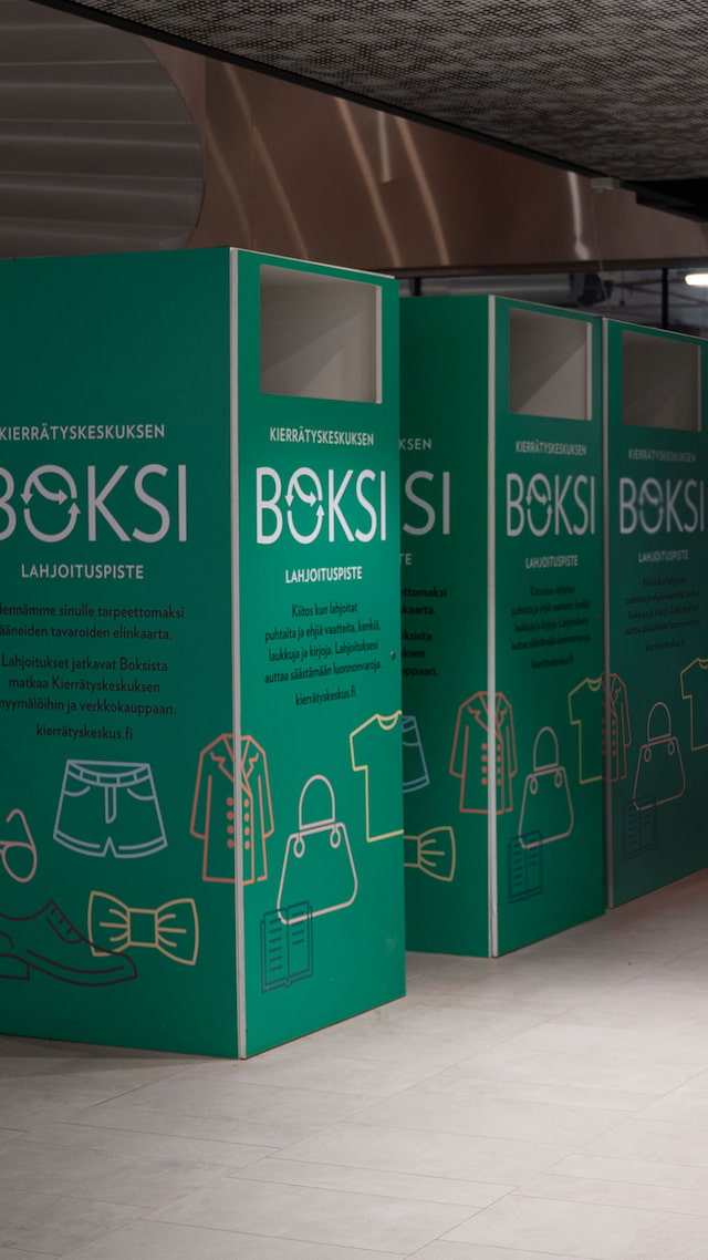 Boksit löydät kummankin myymälän infopisteen läheltä, ja henkilökunta ottaa lahjoitukset vastaan.