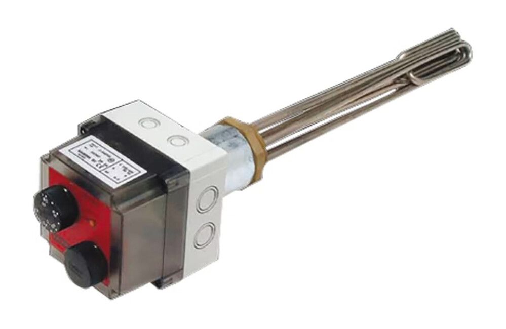 Tämä energiavaraajan sähkövastus liitetään 2" kierreyhteeseen. Tehdasasenteisessa kotelossa valmiiksi johdotettuna pääkytkin ja lämpötilan säätö- ja rajoitintermostaatti.