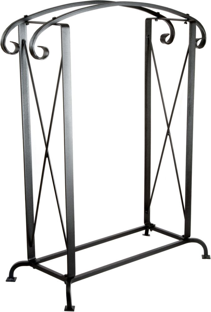Korkea, halkoteline halkojen kuivatukseen ja säilytykseen. Takorautaa, päällystetty jauhemaalilla.
