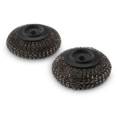 Aseta hankaussieni parila levylle ja levitä saippuaa painamalla kahvan painiketta kevyesti. Hankaa pyörivin liikkein. Kahva on helppo irrottaa kun sienen vaihtopää on tarpeen uusia. Kestävää teräslankaa.