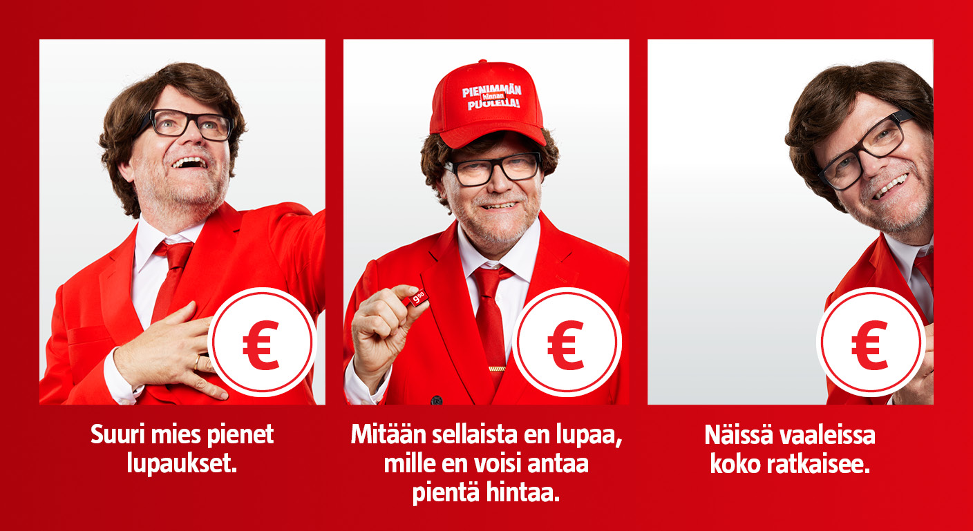 Pysähdy hetkeksi. Hengitä sisään tuttua, turvallista ilmaa. Tunnustele ympärillesi – tunnetko sen? Se on jatkuvuus. Se on varmuus. Se on pienten hintojen ikuinen lupaus. Minä, pienten hintojen puolustaja, ilosanoman sanansaattaja, Hinnoittelujohtaja Martti, tulen nyt kiittämään. Sinua. Teitä kaikkia.