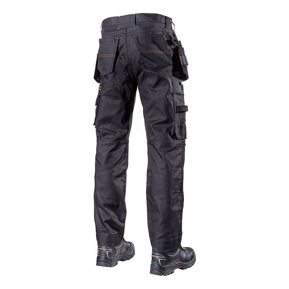 Käytännölliset työhousut, joissa on canvas-kangasta, mekaanista stretch-materiaalia ja hyvä kulutuskestävyys. Etuosassa ja haarakappaleessa on hyvää liikkuvuutta ja käyttömukavuutta tarjoavaa neljään suuntaan venyvää stretch-materiaalia. Vahvistetut polvisuojataskut lisäävät kulutuskestävyyttä.