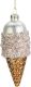 Kaunis helmikoristeinen lasinen jäätelötötterö joulukoristeluun. Pituus 13 cm.