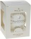 Lahjapaketissa kaunis valkoinen joulukuusenpallo, jossa lukee Baby´s First Christmas 2025 (suom. vauvan ensimmäinen joulu 2025). Pallon päällä koristeena rusetti ja höyheniä. Pallo on valmistettu korkealaatuisesta särkymättömästä muovista.