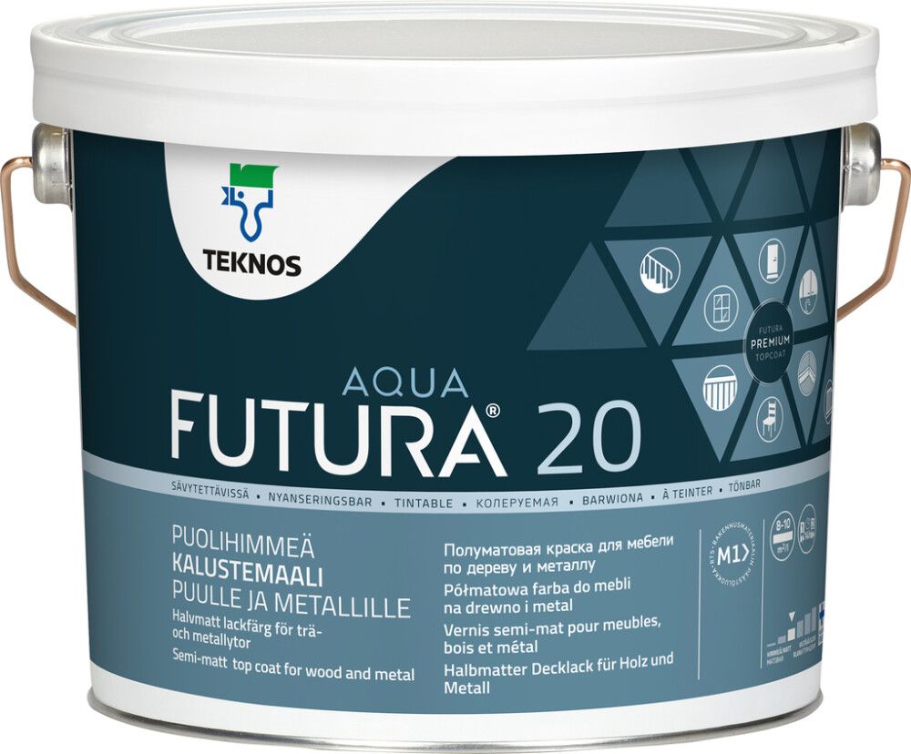 Vesiohenteinen uretaani-alkydipohjainen puolihimmeä Futura Aqua 20 pintamaali sisä- ja ulkokäyttöön irto- ja kiintokalusteille. Sisätiloissa Futura Aqua 20 soveltuu maalattavaksi pohjamaalatuille ja aiemmin alkydimaaleilla maalatuille puu-, metalli- sekä rakennuslevypinnoille: ovet, ikkunanpuitteet, kaapistot, listat, paneelit ja paneelikatot sekä esim. ilmastointikanavat, porraskaiteet, lämpöpatterit ja putkistot. Ulkona Futura Aqua 20 soveltuu pohjamaalattujen ikkunanpuitteiden, ovien ja ulkokalusteiden ym. maalaukseen.