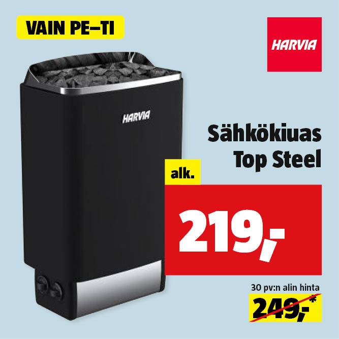 TERMOSähköpatteri Termo Steel 300 W64,90 €Tarjoushinta voimassa 06.1.2026 astiSäästösi: 10,00 € Norm. hinta: 74,90 € -