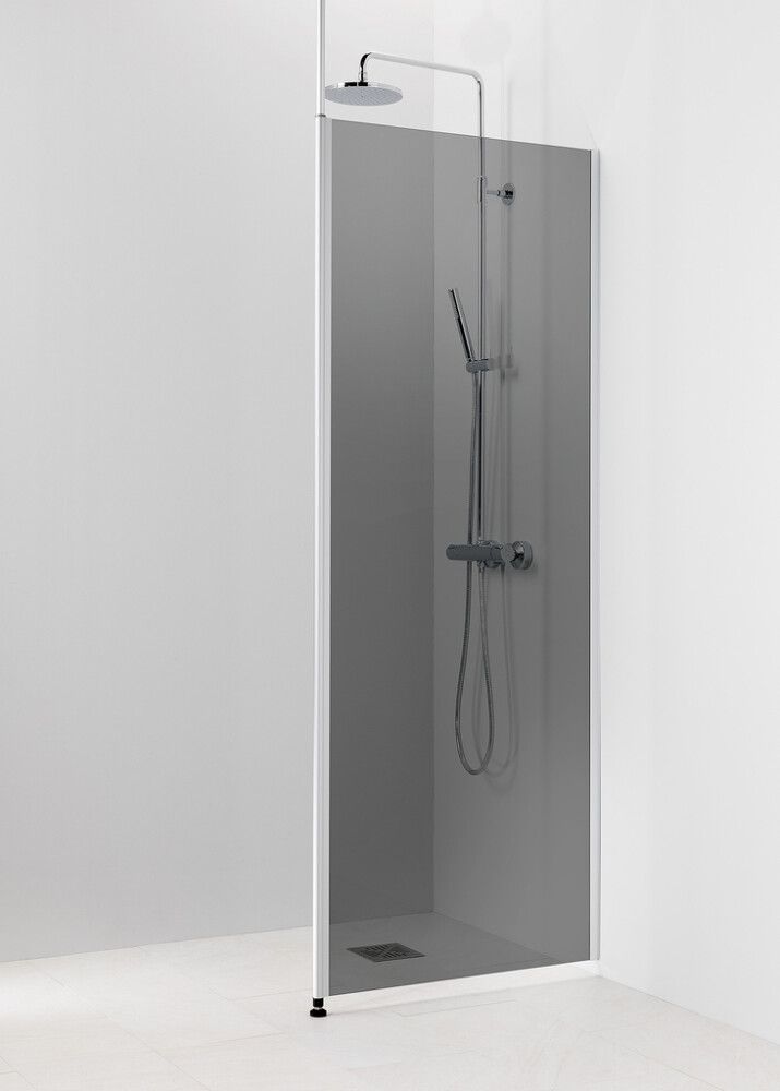 Toimitus sisältää 1 x Pisara 1 Harmaa -kiinteän suihkuseinän teleskooppikiinnityksellä sekä laahustiivisteen.