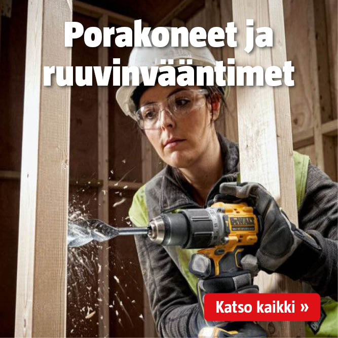 Erilaiset ammattitasoiset ja laadukkaat koneet ja työkalut tekevät työnteosta ja isommistakin remonteista sujuvia ja tehokkaita. Oletko remontoimassa, rakentamassa tai siistimässä? Valikoimastamme löydät varmasti kaikki tarvitsemasi koneet ja työkalut sekä muut tarvikkeet, kuten porakoneet ja maalausvälineet, niin kotiin kuin rakennustyömaallekin. Tarvitsetko ehkä ruuvinväännintä, höylää tai moottorisahaa? Meiltä löydät rakennustarvikkeet, työkoneet ja työkalut joka lähtöön, niin ammattikäyttöön kuin kotinikkareillekin! Löydät meiltä niin käsityökalut, moottorityökalut kuin akuillakin toimivat koneet monilta laadukkailta huippumerkeiltä. Hanki isot ammattilaiskäyttöönkin sopivat koneet, kuten kompressorit, yhdestä paikasta ja vaikka kotiinkuljetuksella. Voit myös pitää kaikki kodin sekä työpaikan työkalut järjestyksessä, sillä meiltä löydät laajan valikoiman erilaisia työkalukaappeja ja -pakkeja. Työnteon turvaksi tulevat oikeaoppiset työvaatteet ja turvavarusteet, kuten työhaalarit ja turvakengät. Saat meiltä myös tehokkaat apuvälineet siivoukseen, joten remontoinnin ja korjauksen jälkitoimet sujuvat yhtä mukavasti kuin itse työ. Muista myös, että myönnämme kuluttaja-asiakkaillemme 5 vuoden takuun kaikista sähkö- ja moottorikäyttöisistä työkoneista takuuehtojemme mukaisesti. Tule ostoksille BAUHAUSin verkkokauppaan tai tavarataloihimme ja tee töistäsi sujuvampia!