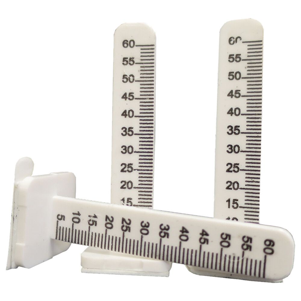 Itseliimautuva muovinen korkomerkki lattiatasoituksien ja valujen korkeuksien merkitsemiseen. Asteikko 0–60 mm. Pakkauksessa 50 kpl.