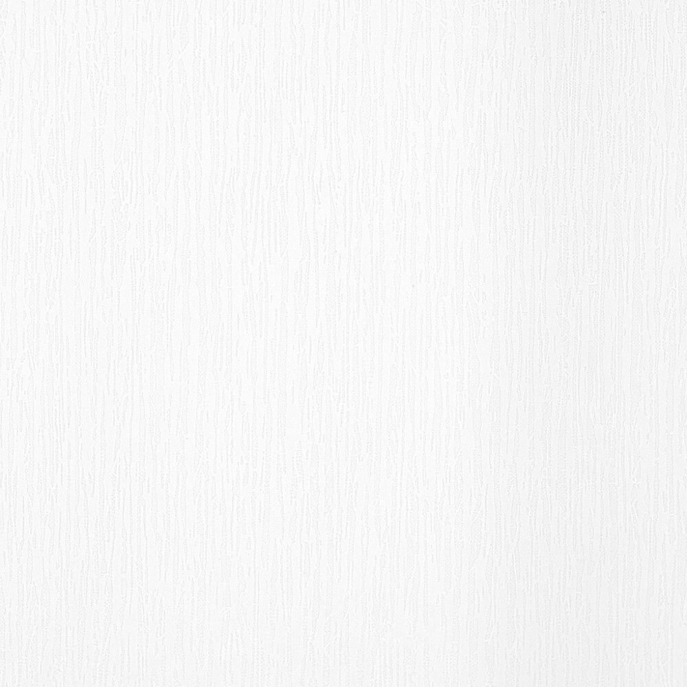 Valkoinen tapetti, jossa etäisesti "puunsyitä" muistuttava tekstuurikuvio. Erikoispitkä 14 metrinen tapettirulla on riittoisa!