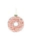 Kaunis vaaleanpunainen lasidonitsi joulukoristeluun. Päällä koristeena punaisia helmiä.