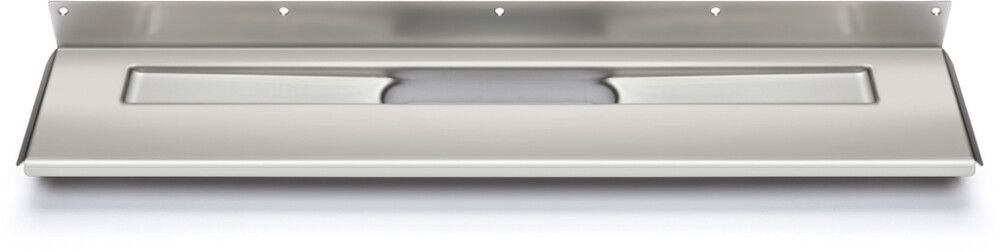 Unidrain-kaivojärjestelmän lattiakaivokaluste, joka voidaan asentaa keskelle seinää sivuseinien sijoituksesta riippumatta. Lattiakaivokalusteessa on vedeneristeen liittämistä varten yksi seinälaippa ja kolme lattialaippaa.