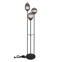 Kaunis 1-osainen pystysuora lattiavalaisin. Valaisimessa on yksi savunvärinen lasivarjostin.