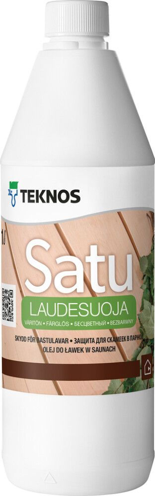 Parafiiniöljyä sisältävä väritön ja hajuton suoja-aine puupintojen käsittelyyn. Muodostaa likaa ja vettä hylkivän, mutta hengittävän pinnan. Syventää puupinnan luonnollista värisävyä. Saunan lauteiden, keittiön puisten työtasojen yms. puupintojen käsittely. Soveltuu käsittelemättömälle ja aiemmin öljykäsitellylle puupinnalle. Voidaan käyttää myös löylyhuoneiden katto- ja seinäpaneelien käsittelyyn. Pinnan esikäsittely: Uudet puupinnat puhdistetaan pölystä ja liasta. Aiemmin öljytyt pinnat pestään RENSA SAUNA saunapesulla ja huuhdotaan huolellisesti vedellä. Jos puupinta on aiemmin lakattu tai käsitelty saunasuojalla, pinta tulee hioa puupuhtaaksi. Pintakäsittely Ennen käyttöä tuote sekoitetaan huolellisesti. SATU LAUDESUOJA levitetään siveltimellä, sienellä tai puhtaalla kankaalla. Laudesuojaa levitetään puhtaalle kuivalle puupinnalle 1–3 kertaa pinnan imevyydestä riippuen. Imeytymätön öljy pyyhitään pinnalta ½ tunnin kuluttua levityksestä. Olosuhteet: Käsiteltävän pinnan tulee olla kuiva. Käsittelyn ja kuivumisen aikana tulee ilman, pinnan ja tuotteen lämpötilan olla yli +10 °C ja ilman suhteellisen kosteuden alle 80 %. Tuulettaminen maalaustyön ja tuotteen kuivumisen aikana nopeuttaa kuivumista. Käyttöönotto: Sauna tulee esilämmittää ja tuulettaa ennen käyttöönottoa. Pinnan hoito: Pinta voidaan puhdistaa neutraalilla (pH 6 - 8) pesuaineliuoksella pyyhkimällä. Pesuaine ja lika poistetaan pyyhkimällä ja/tai huuhtelemalla pinta puhtaalla vedellä. Työvälineenä käytetään siivouspyyhettä, pehmeää sientä tms. Karkeaa harjausta tai voimakasta hankausta tulee välttää. Pesuaineiden käytössä noudatetaan pesuainevalmistajan laimennus- ym. käyttöohjeita