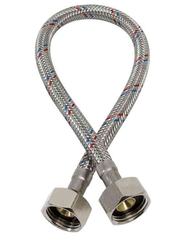 Gelian hyväksytty liitäntäletku, jossa on ruostumaton punos ja pehmeä PEX-sisäputki. Liittimet ovat suora-suora. Putken kestää veden enimmäislämpötilaa tilapäisesti 90°C, jatkuvasti 70°C. Korkeintaan 10 baaria.