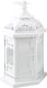 Kaunis valkoinen lyhty puutarhaan, terassille ja kodinsisustukseen. Lyhdyssä on koristeellinen katto ja kannessa kätevä metallirengas. Lyhdyn voi ripustaa tai asettaa tasaiselle pinnalle luomaan tunnelmaa.