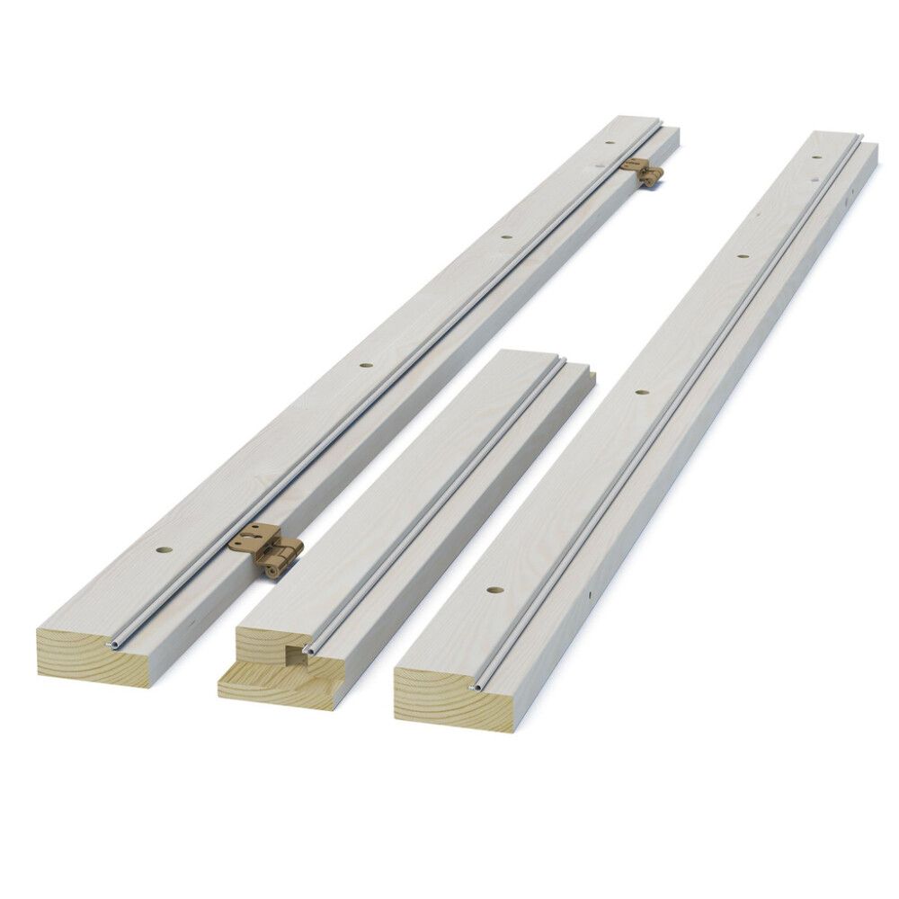 Valkolakattu mäntykarmi Tradition 51-oven karmiksi. Karmin tiiviste eristää ääntä, ja sen ansiosta ovi sulkeutuu kolahtamatta.