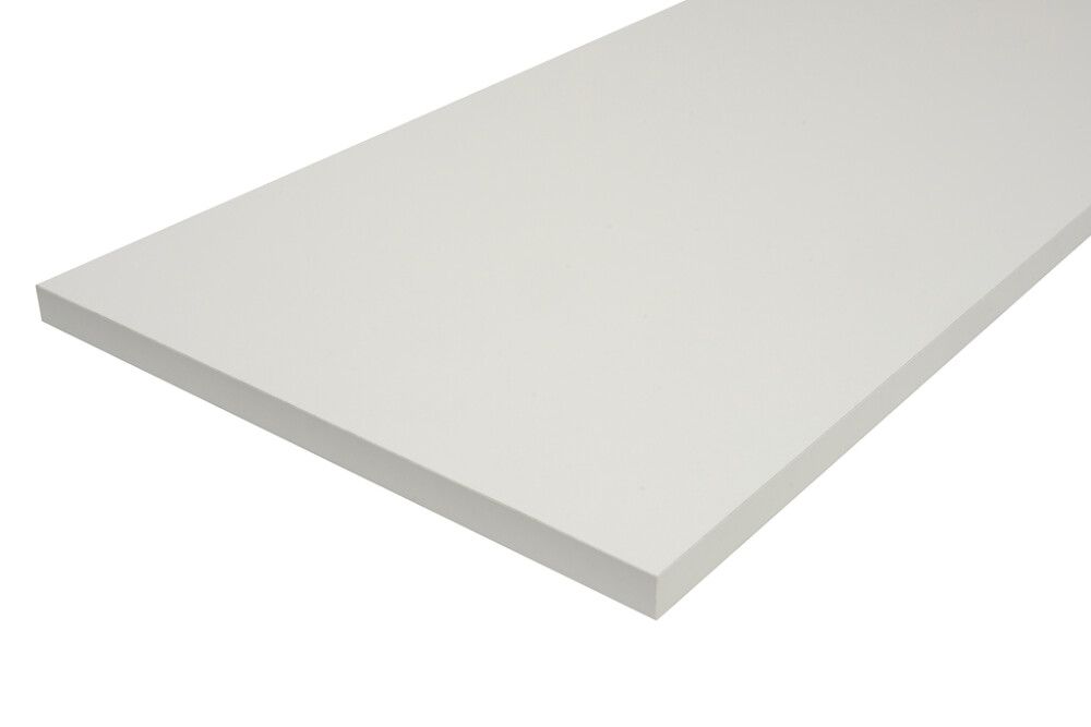 Valkoinen 16 mm paksu melamiinilevy, joka on reunanauhoitettu kaikilta sivuilta. Saatavilla useita eri kokoja.