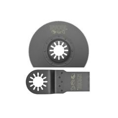 Sisältää upposahausterä, segmenttiterä puuhun/metalliin, hiomatalla ja 5 hiomapaperia sekä adapteri vakiokokoisille tarvikkeille.
