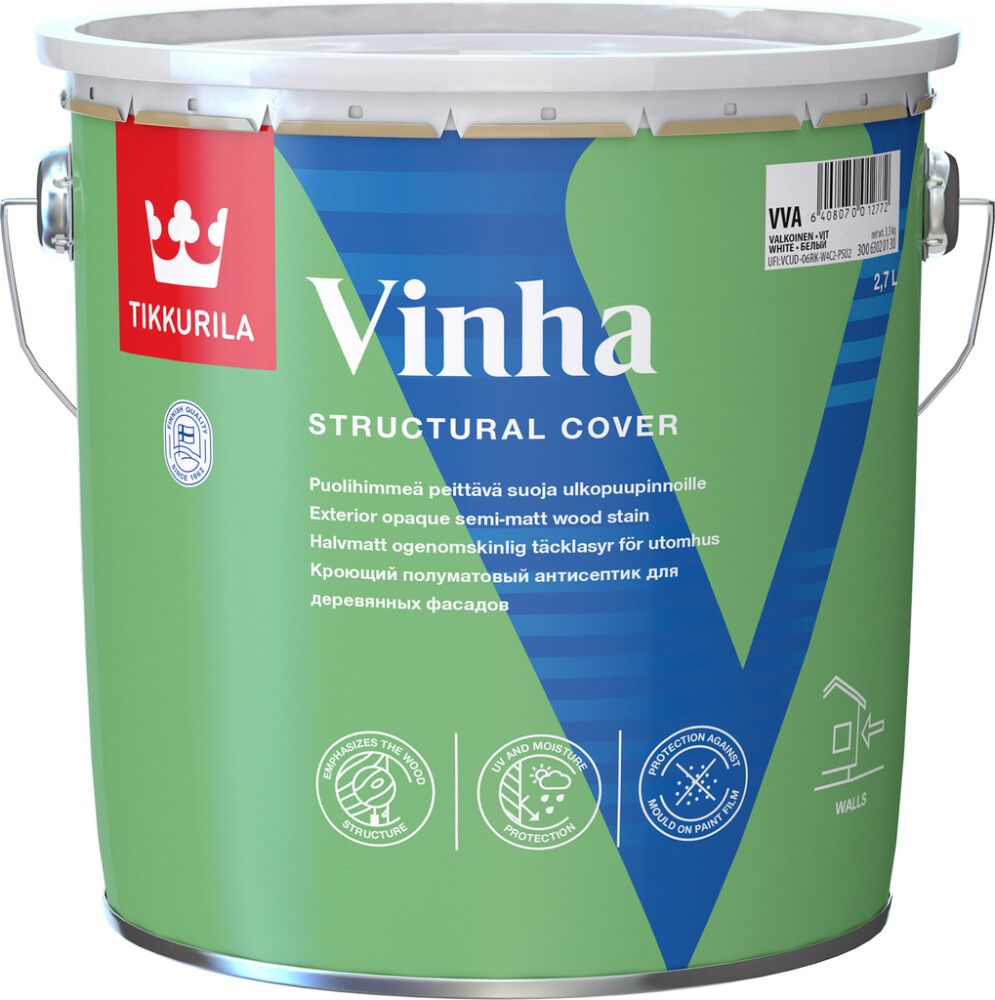 Tikkurilan Vinha on peittosuoja, jolla sivelet helposti puolihimmeää, alustan mukaan elävää suojaa niin lauta- kuin hirsipinnoille. Vinha soveltuu uusille tai aiemmin käsitellyille puupinnoille. Vinhalla vaihdat helposti tummaksi kuullotetun puun taas vaaleaan suuntaan. Vinha on kehitetty puujulkisivuille kestämään Suomen ääriolosuhteita. Pinta joustaa ja elää alustan ja vuodenaikojen mukaan. Muodostaa vedenkestävän maalipinnan, joka kuitenkin päästää vesihöyryn ulos. Vinha on erinomainen huoltomaali. Sideaineena on alkydivahvisteinen akrylaatti. Soveltuu uusille ja aikaisemmin Vinhalla tai kuullotteilla käsitellyille pinnoille, sahatuille ja höylätyille pinnoille sekä painekyllästetylle puulle. Soveltuu myös teollisesti pohjamaalatuille puupinnoille. Käyttökohteina ulkoseinät, ikkunanpuitteet, vuorilaudat yms. Ei sovellu lattioiden käsittelyyn.