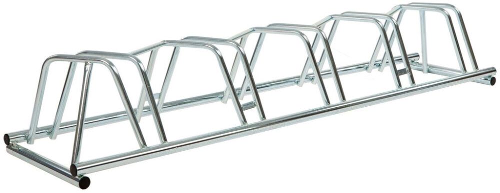 Siirrettävä polkupyöräteline, jossa viidelle pyörälle paikat.