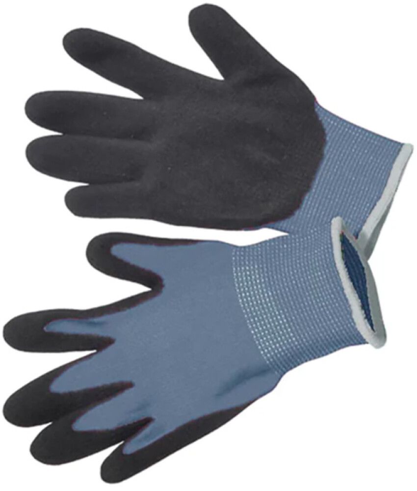 Kierrätyspolyesteristä ja spandeksista neulotut puutarhakäsineet lapsille. Kämmenen puolella ja sormenpäissä nitriilipäällyste. Hyvin notkea käsine, hyvä ote.