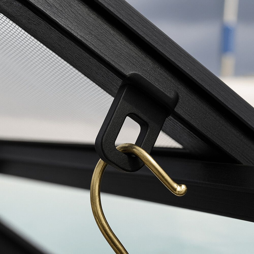 Kätevät ripustuskoukut Strömsö kasvihuoneeseen. Koukku kiinnitetään kasvihuoneen runkoon.