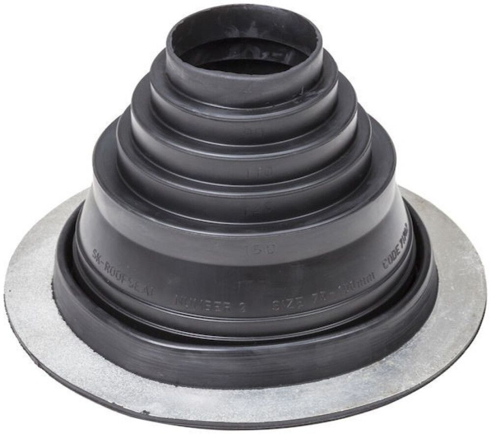 EPDM-kumitiiviste, jossa muotoiltava alumiinilaippa. Käytetään pyöreän putken tiivistämiseen. Asennus pelti- tai huopakatteen päälle.