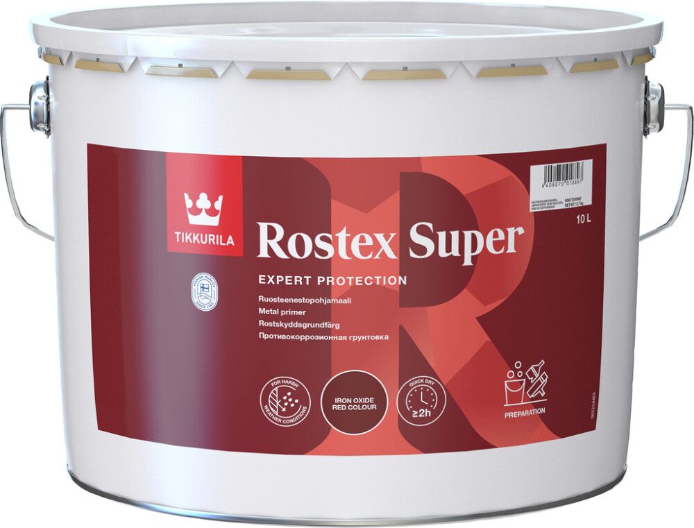 | Tuotenimi | Ruosteenestopohjamaali Tikkurila Rostex Super Rautaoksidin Punainen 10 l |