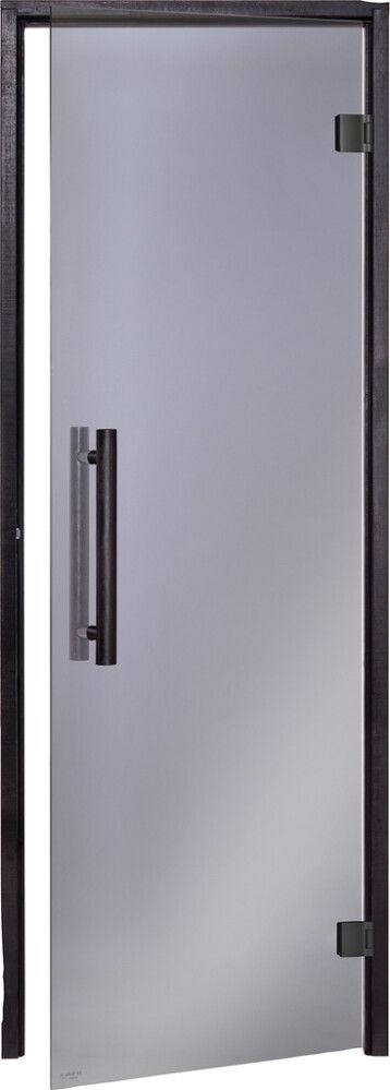 Andres Black on moderni rullalukolla varustettu saunanovi, jossa on musta karmi ja heloitus. Puinen tyylikäs pystyvedin. 92 mm syvät karmit ovat kuultavaksi petsattua ja lakattua oksatonta haapaa. Karkaistu lasi on harmaaksi sävytetty ja 8 mm paksu. Oven kätisyyden voi muuttaa.
