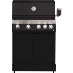 Jauhemaalatusta teräksestä valmistettu sivukaappi 3 kW keittimellä Kingstone Quad grillimoduuliin. Tasopinta ruostumatonta terästä. Kaapppin sopii 11 kg kaasupullo.