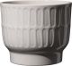 Moderni kiiltäväpintainen alaosastaan kapeampi suojaruukku kodin viherkasveille. Ruukun pinnalla koristeena kohokuviointi.
