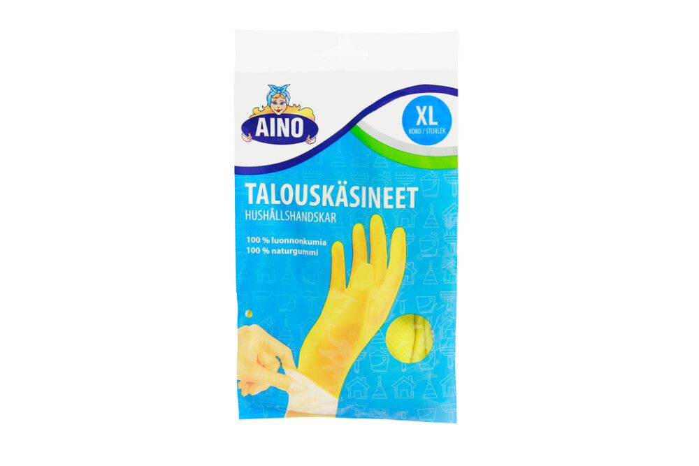 Aino talouskäsineiden puuteroitu sisäosa estää käsien hikoilua käytön aikana. Karhennettu kämmenosa antaa pitävän otteen. Talouskäsineet suojaavat käsien ihoa kemikaaleilta. Pitkän varren ansiosta käsineet soveltuvat erinomaisesti esimerkiksi tiskaamiseen ja kylpyhuoneen tai ikkunoiden pesuun. Voidaan käyttää myös puutarhatöissä. Käsineiden alla voidaan käyttää Aino puuvillaista aluskäsinettä.