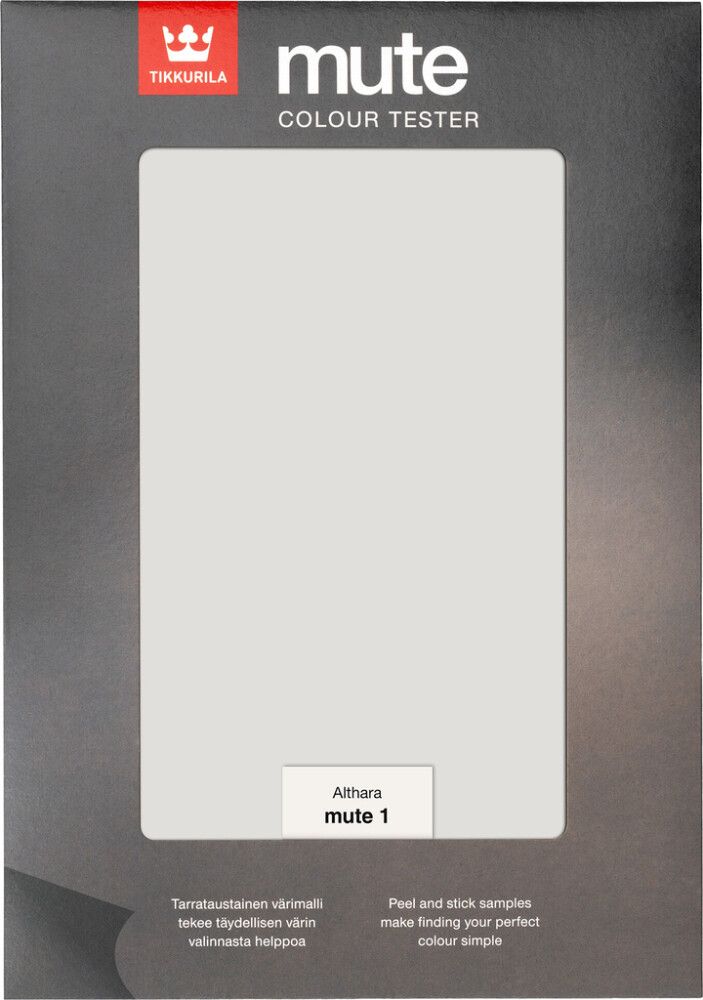 Tikkurila Mute sisustusmaalin tarrataustainen värimalli tekee täydellisen värin valinnasta helppoa. Luo oma tyylisi ja löydä värisävysi Mute-värikokoelmasta tuomaan rauhallisuutta kotiisi. Mute-värimallit on maalattu syvämatalla Mute maalilla, joten sävy toistuu samana kuin Mute maalilla maalatessa. Tarrataustaiset värimallit ovat saatavilla Mute-värikokoelman 18 sävyssä.