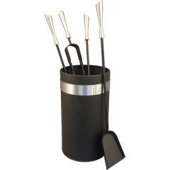Musta teräksinen tuhkasanko kannella. Sangassa on puinen kahvaosa, joka helpottaa sangon kantamista.