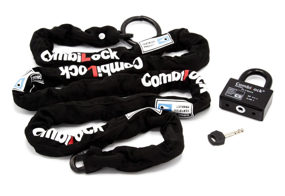 Luokan 3 lukkopaketti riippulukolla ja ketjulla, joka on suunniteltu vaativiin ympäristöihin. Karkaistu lukkotanko ja ketju. Lukkoketju kangaspäällyksellä. Silmukka ketjun toisessa päässä. Riippulukko kompaktilla lukkokotelolla muovisuojalla.