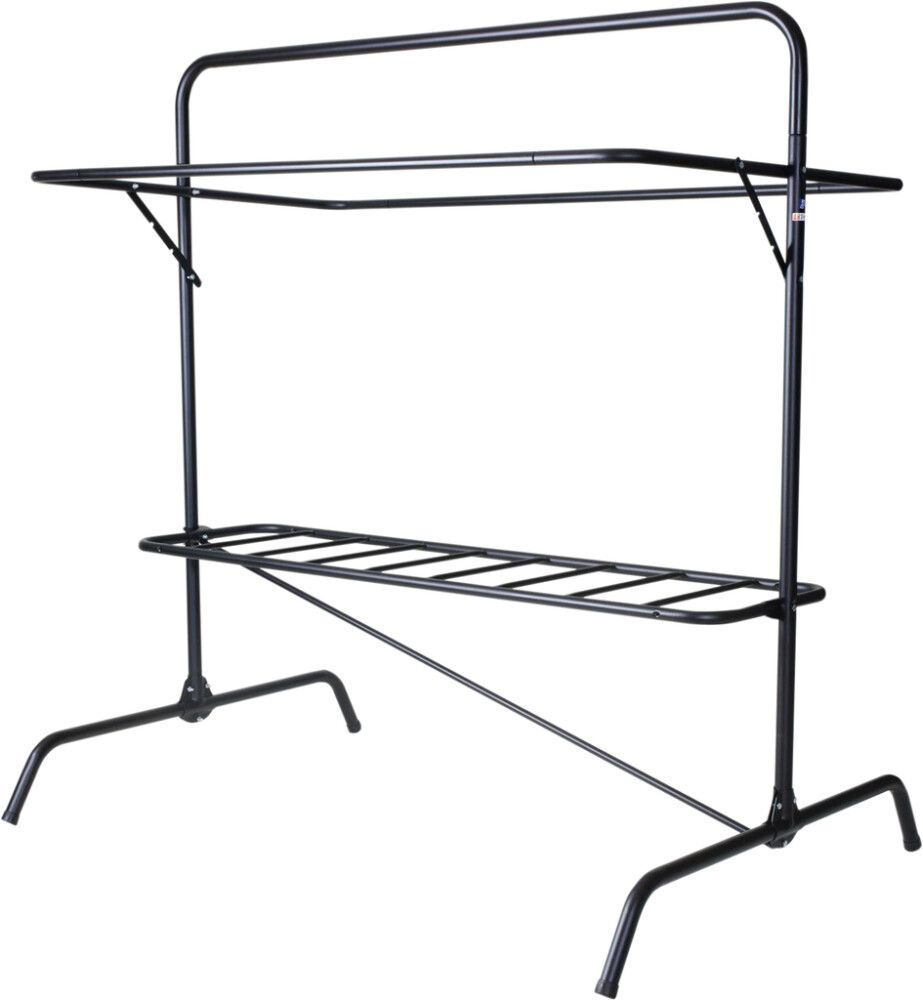 Perinteinen liikuteltavissa oleva tuuletusteline. Kääntyvä kippilaite helpottaa raskaiden mattojen tamppausta.