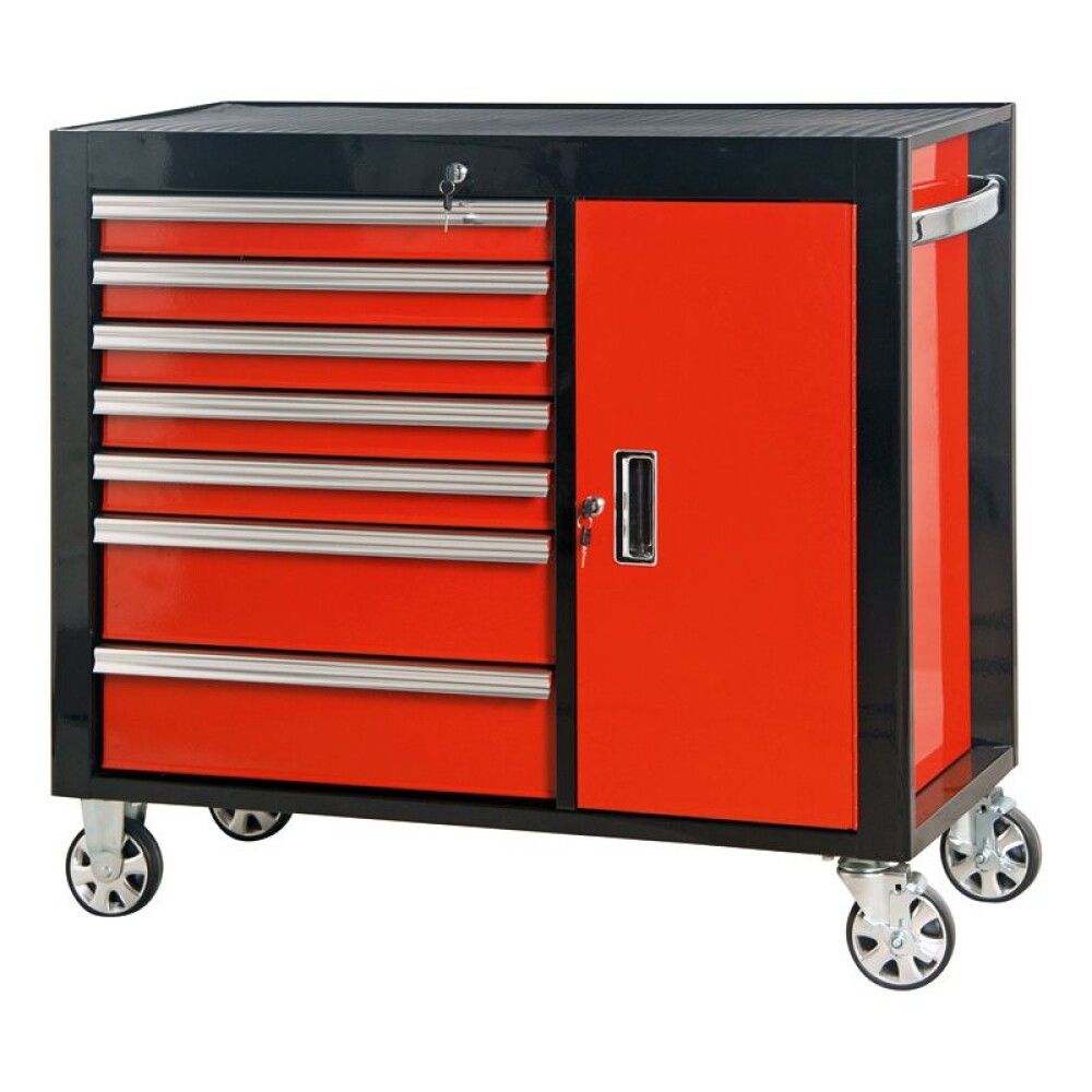 Vaunussa on seitsemän laatikkoa ja yksi kaappi jossa vielä kaksi erillistä laatikkoa. Vaunu tarjoaa runsaasti säilytystilaa työkaluillesi.
