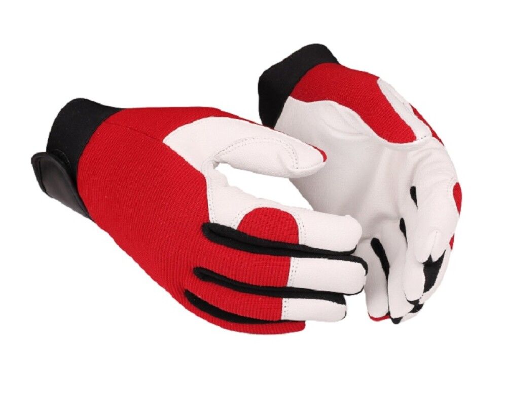 Hyvin istuva työkäsine, jossa yhdistyvät joustava tekstiili ja vuohennahka. Tarranauha hanskan reunassa pitää hanskan kädessä. Vuohennahka on kestävää ja joustavaa. Etusormi ja sormenpäät ovat vahvistetut. Tekstiilipäällinen on valmistettu joustavasta synteettisestä materiaalista. Työkäsine Guide 54 sopii erinomaisesti kaikenlaiseen asennus- ja rakennustyöhön ja teollisuuteen.