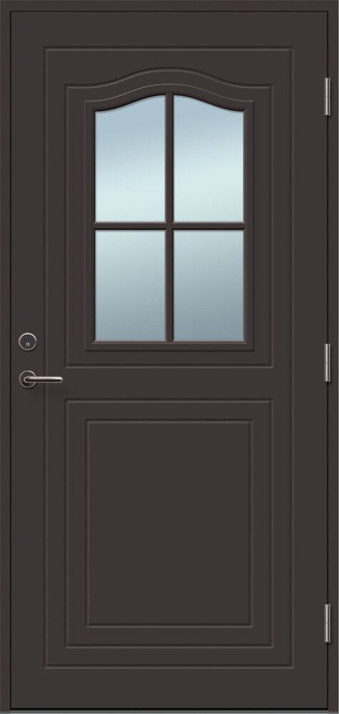 Ulospäin avautuva ulko-ovi vasen- tai oikeakätisenä. Oven runko on valmistettu männystä, kynnys alumiinista ja tammesta. Ovilehden paksuus 65 mm. Sisältää lukkorungon ASSA 565 ja vastarauta 0094.