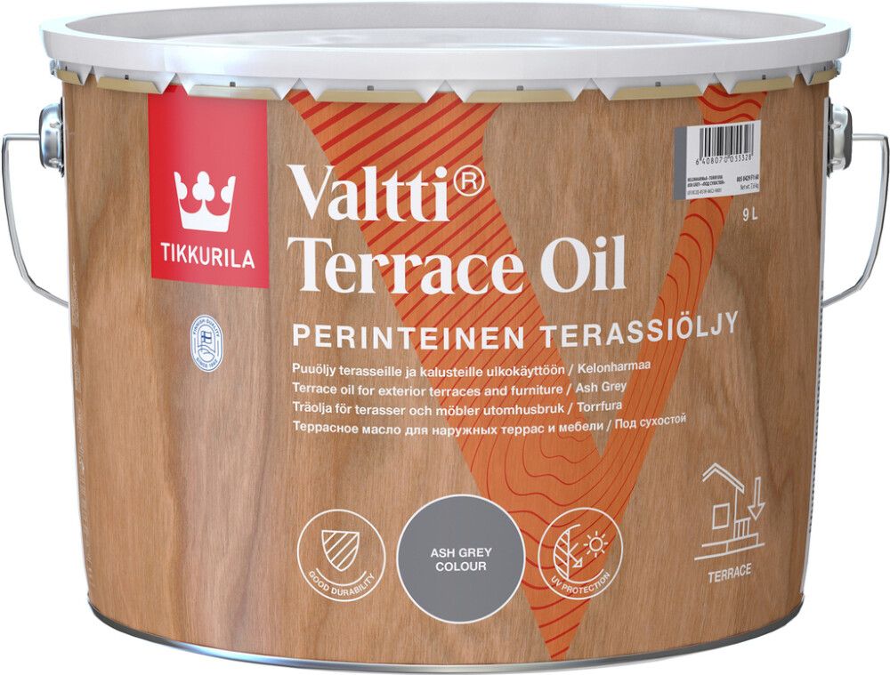 | Tuotenimi | Valtti Kaluste- ja Terassiöljy Tikkurila Kelonharmaa 9 l |