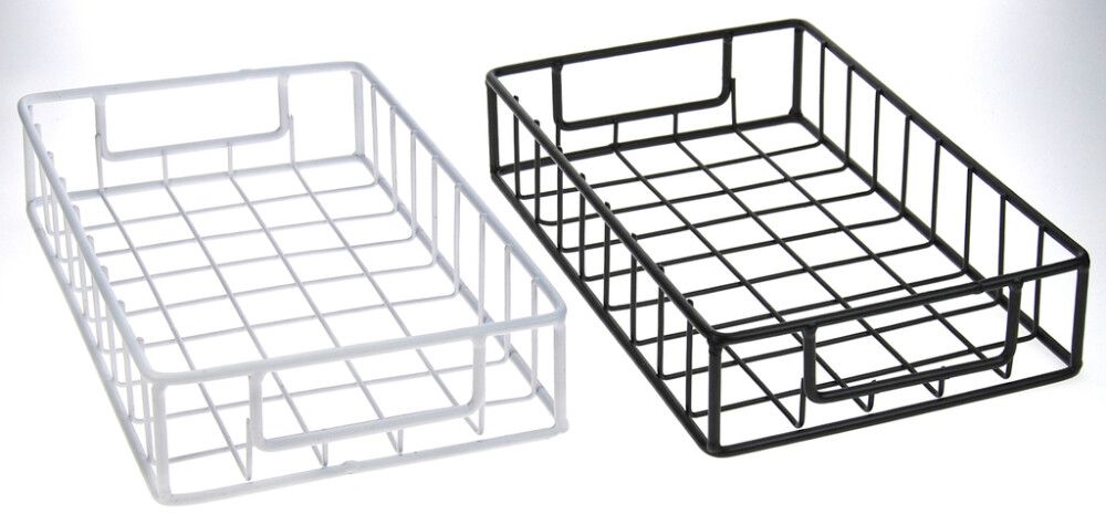 Matala verkkokori pienten tavaroiden säilytykseen. Värilajitelma, musta tai valkoinen.